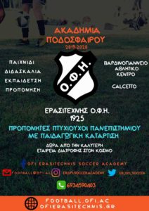Ξεκίνησαν οι εγγραφές στην ακαδημία ποδοσφαίρου του Ερασιτέχνη ΟΦΗ για ηλικίες αθλητών που έχουν γεννηθεί από το 2006 έως το 2015.